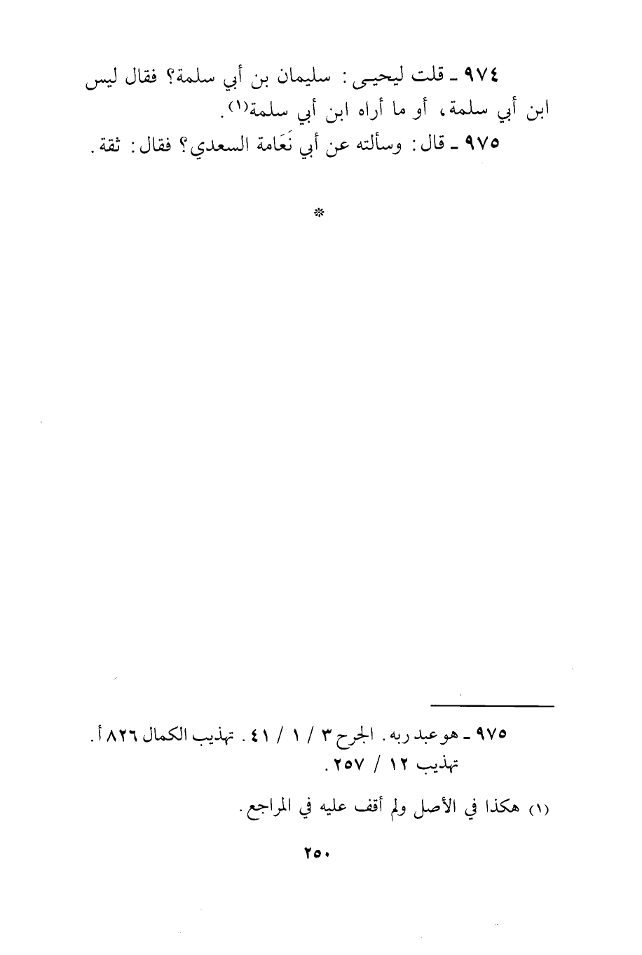 974 - قلت ليحيى سُلَيْمَان بن أبي سَلمَة فَقَالَ لَيْسَ بن أبي سَلمَة أَو مَا أرَاهُ بن أبي سَلمَة