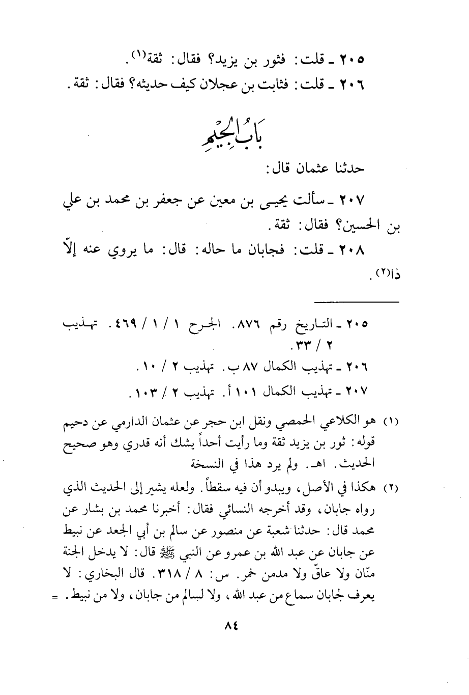 207 - سَأَلت يحيى بن معِين عَن جَعْفَر بن مُحَمَّد بن عَليّ بن الْحُسَيْن فَقَالَ ثِقَة