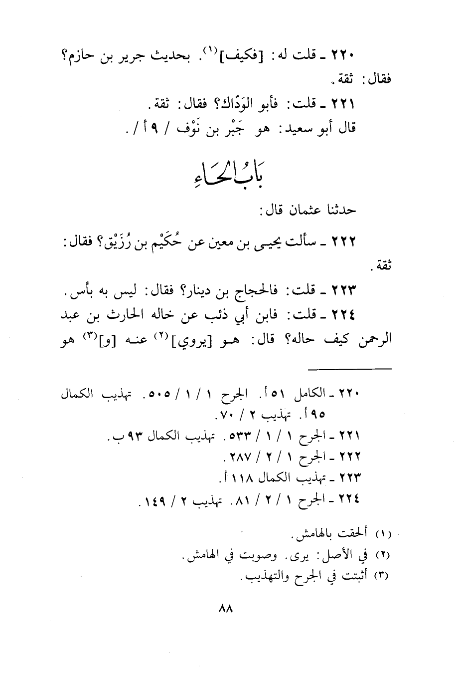 222 - سَأَلت يحيى بن معِين عَن حَكِيم بن رُزَيْق فَقَالَ ثِقَة
