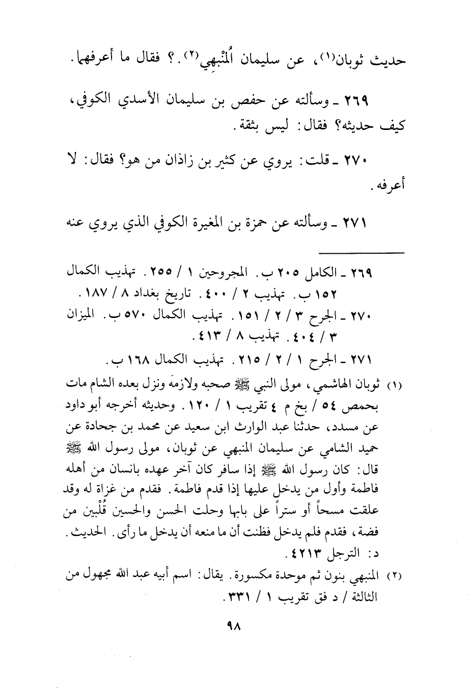 271 - وَسَأَلته عَن حَمْزَة بن الْمُغيرَة الْكُوفِي الَّذِي يروي عَنهُ بن عُيَيْنَة لَا تجْعَلُوا قَبْرِي وثنا مَا حَاله فَقَالَ لَيْسَ بِهِ بَأْس