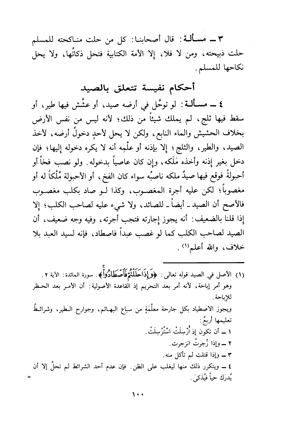 (¬1) الأصل في الصيد قوله تعالى: {وَإِذَا حَلَلْتُمْ فَاصْطَادُوا}. سورة المائدة: الآية 2.