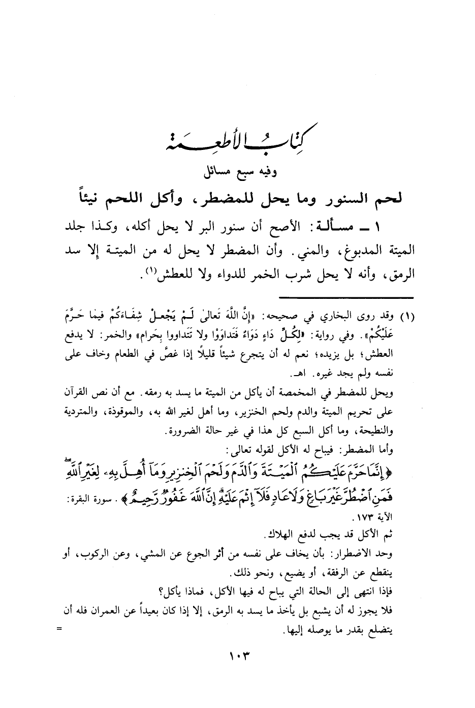 لحم السنور وما يحل للمضطر، وأكل اللحم نيئًا