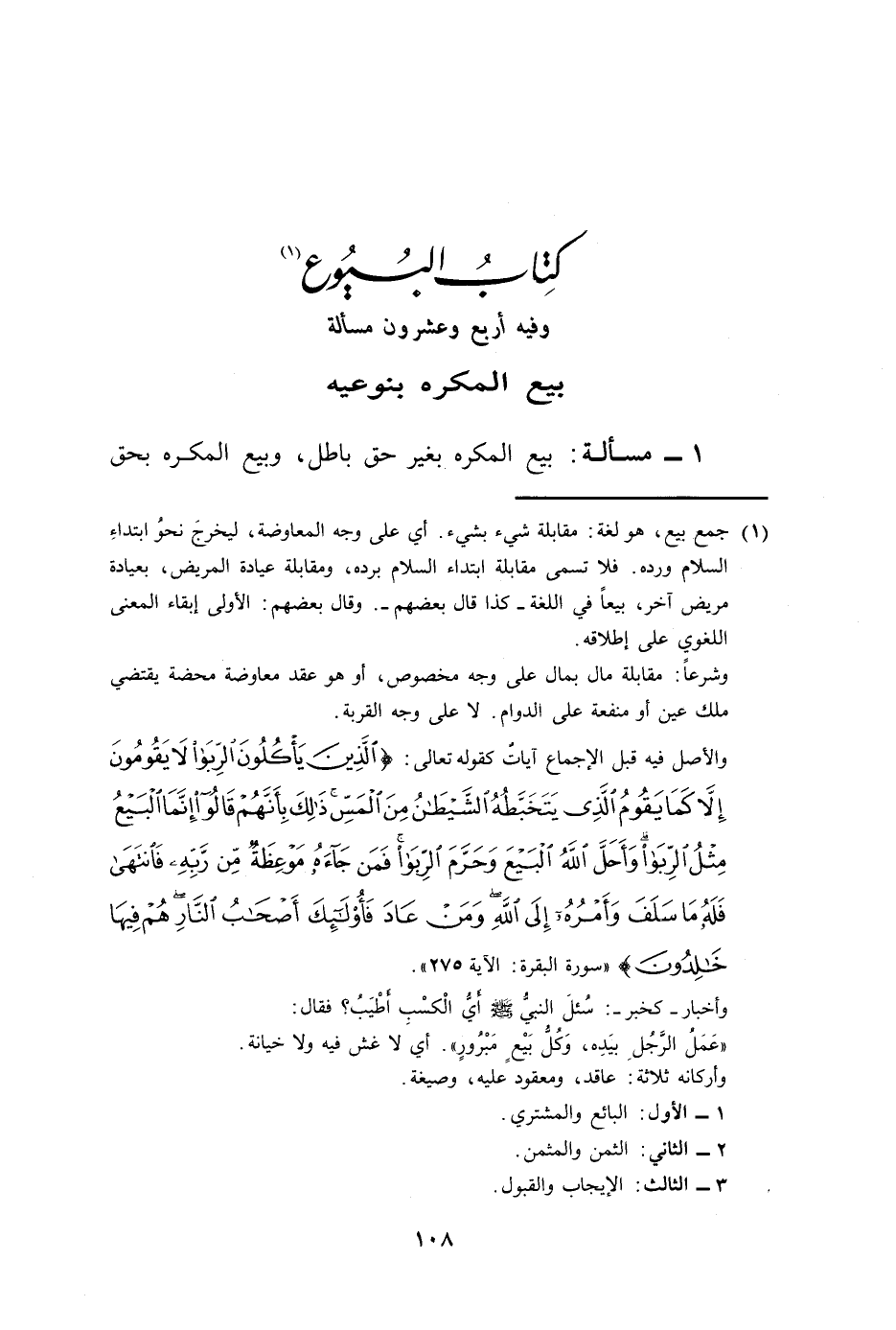 1 - مسألة: بيع المكره بغير حق باطل، وبيع المكره بحق