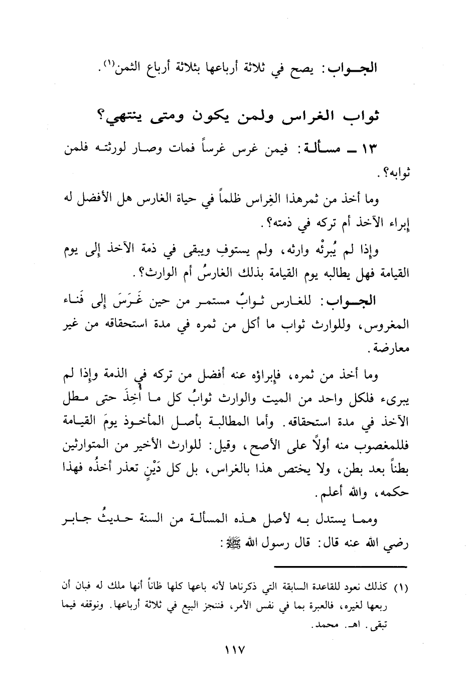 13 - مسألة: فيمن غرس غرسًا فمات وصار لورثته فلمن ثوابه؟.