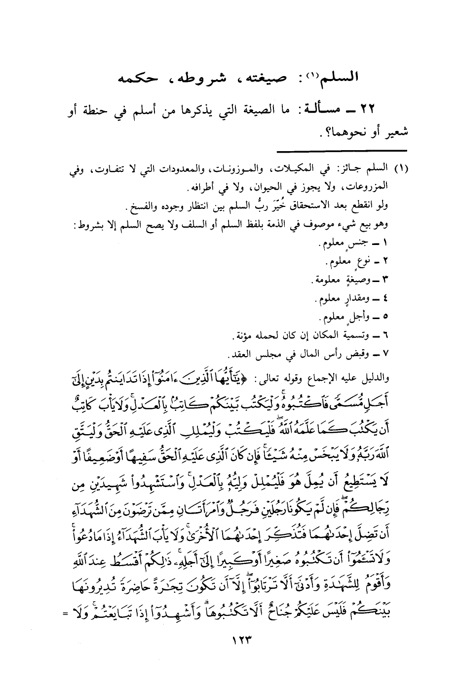 22 - مسألة: ما الصيغة التي يذكرها من أسلم في حنطة أو شعير أو نحوهما؟.