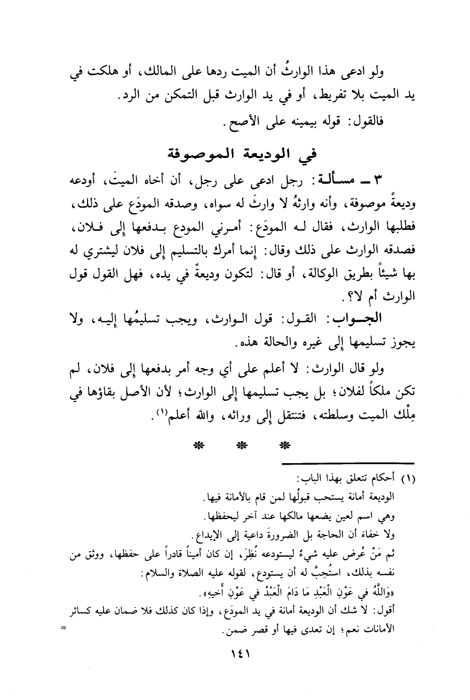 فى الوديعة الموصوفة