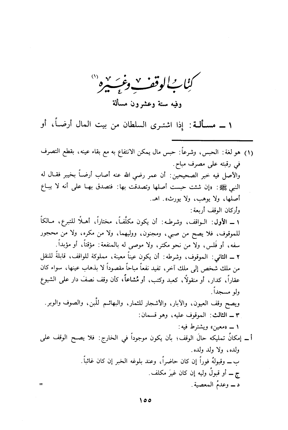 (¬1) هو لغة: الحبس، وشرعًا: حبس مال يمكن الانتفاع به مع بقاء عينه، بقطع التصرف في رقبته على مصرف مباح.