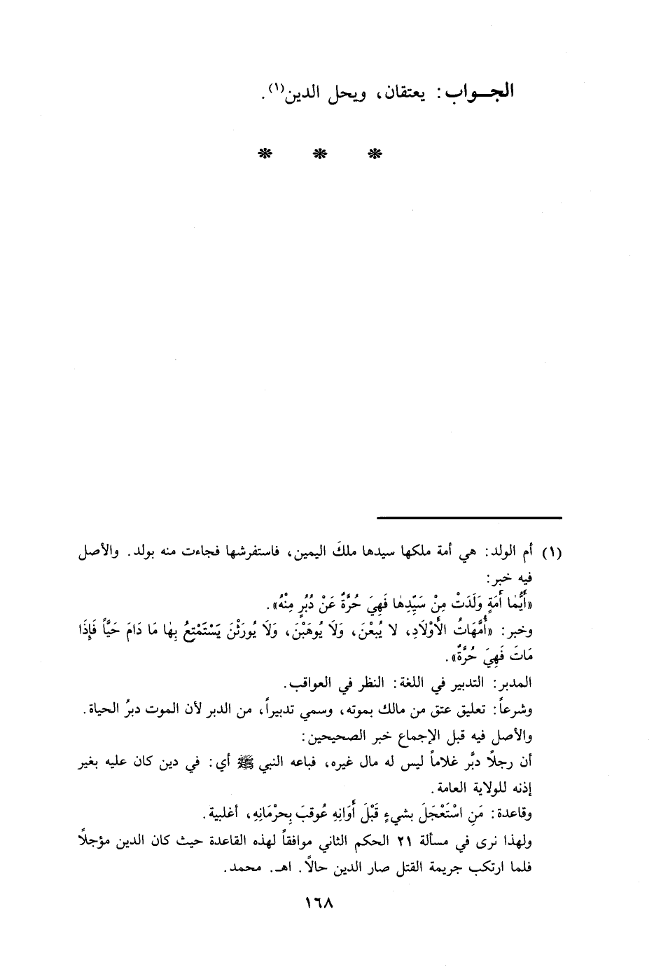 (¬1) أم الولد: هي أمة ملكها سيدها ملكَ اليمين، فاستفرشها فجاءت منه بولد. والأصل فيه خبر:
