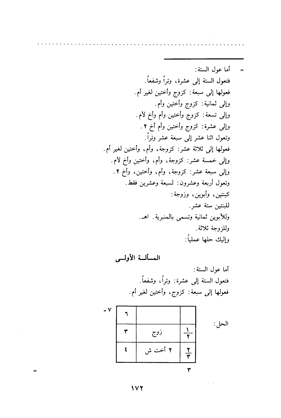 فعولها إلى ثلاثة عشر: كزوجة، وأم، وأختين لغير أم.