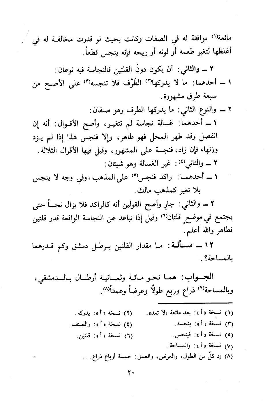 12 - مسألة: ما مقدار القلتين برطل دمشق وكم قدرهما بالمساحة؟.