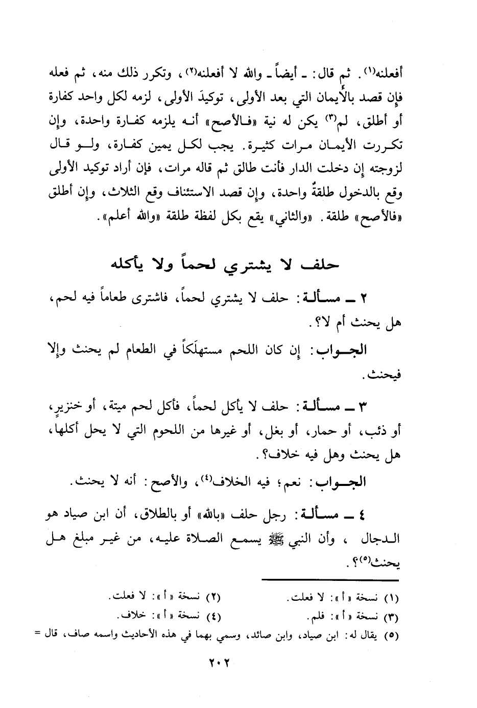 2 - مسألة: حلف لا يشتري لحمًا، فاشترى طعامًا فيه لحم، هل يحنث أم لا؟.