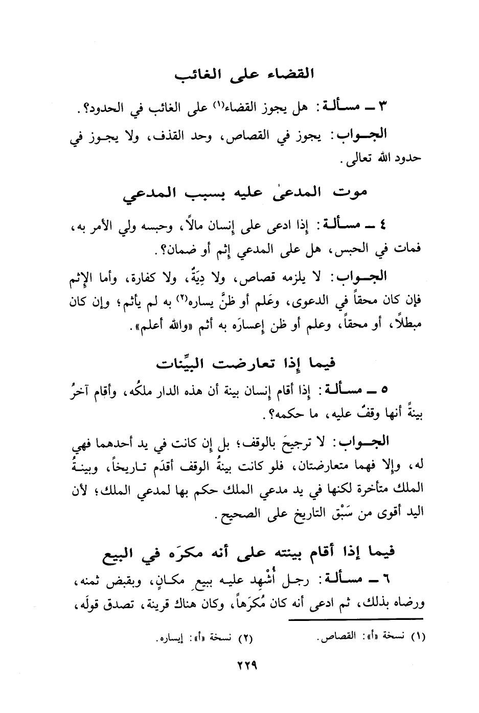 3 - مسألة: هل يجوز القضاء (¬1) على الغائب في الحدود؟.