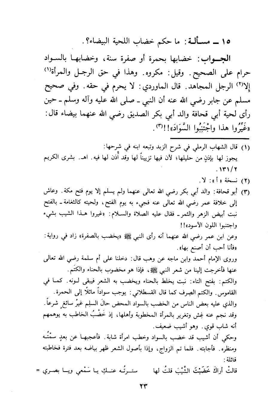 15 - مسألة: ما حكم خضاب اللحية البيضاء؟.