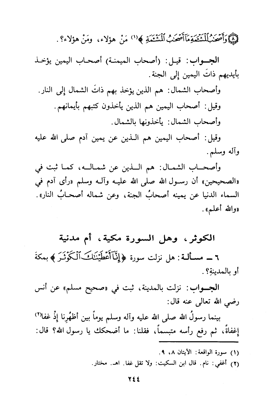 (¬1) سورة الواقعة: الأيتان 8، 9.