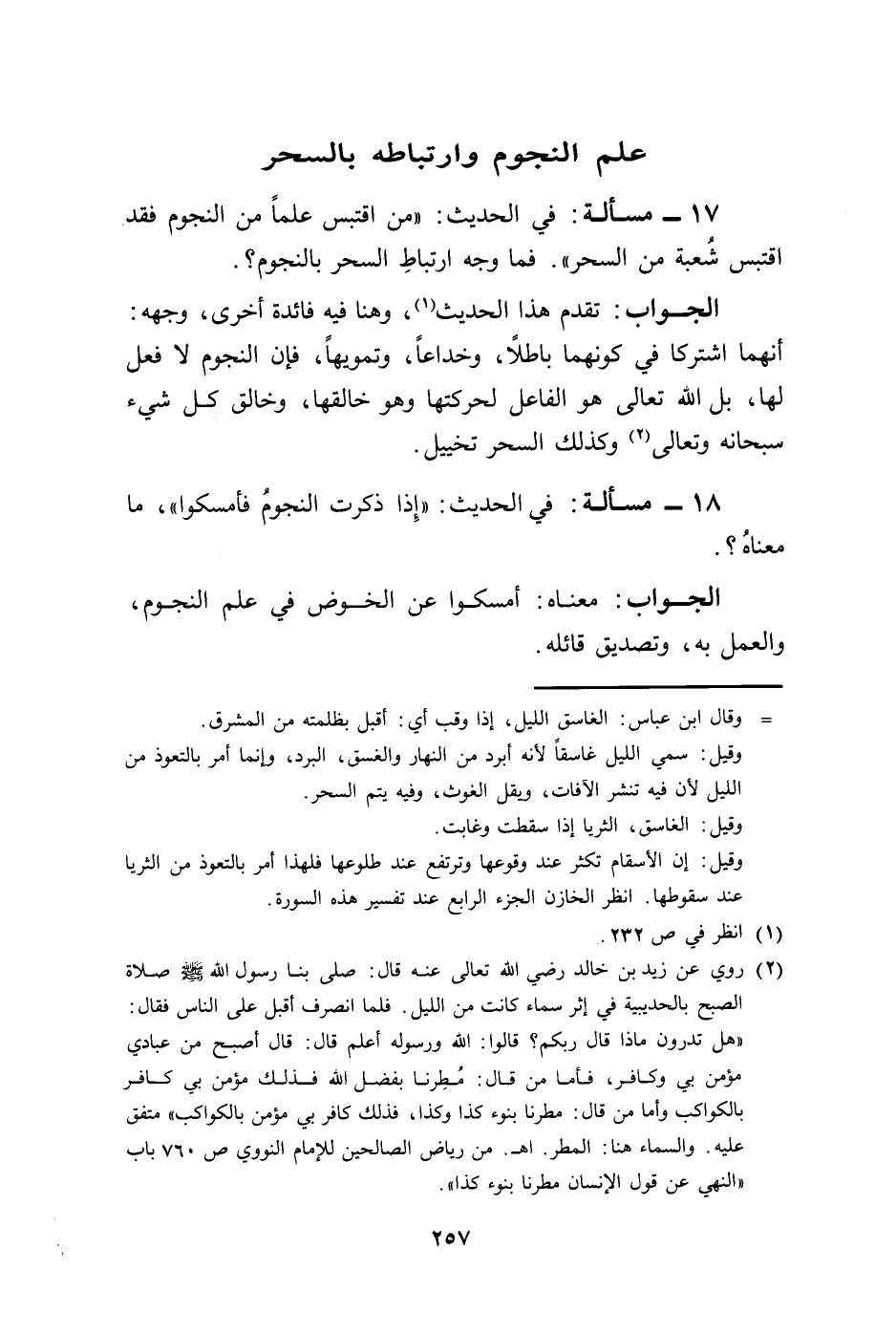 17 - مسألة: في الحديث: "من اقتبس علمًا من النجوم فقد اقتبس شعبة من السحر". فما وجه ارتباطِ السحر بالنجوم؟.