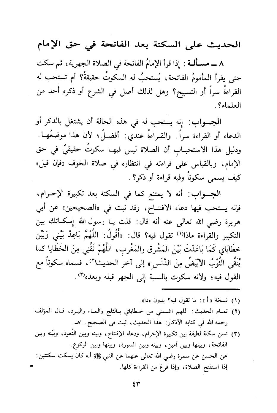 الحديث على السكتة بعد الفاتحة في حق الإمام