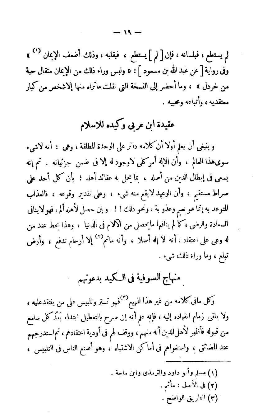 لم يستطع، فبلسانه، فإن [لم] يستطع، فبقلبه، وذلك أضعف الإيمان1" وفي رواية [عن عبد الله بن مسعود] : "وليس وراء ذلك من الإيمان مثقال حبة من خردل" وما أحضر إلى النسخة التي نقلت ما تراه منها إلا شخص من كبار معتقديه، وأتباعه ومحبيه.