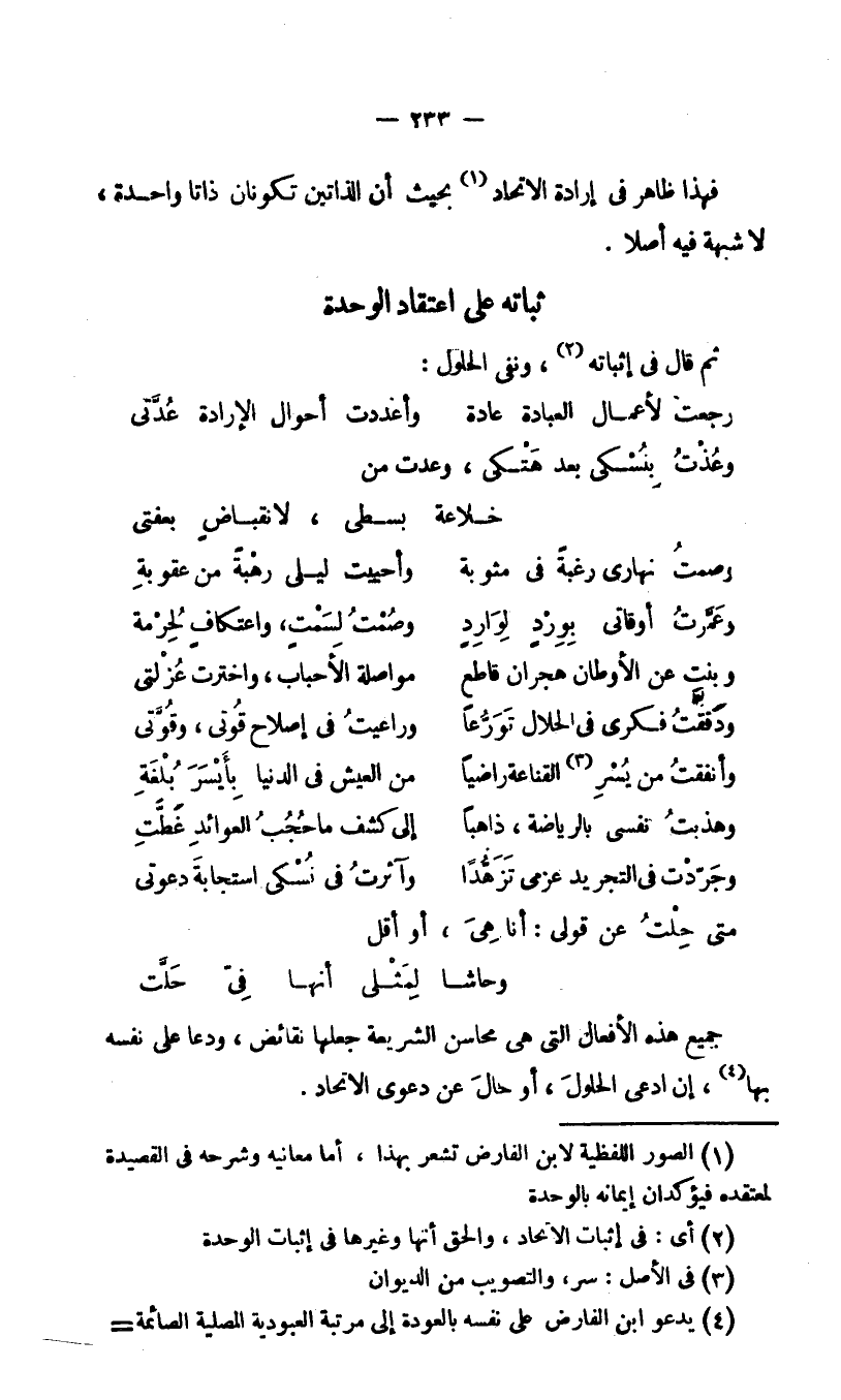 1 الصور اللفظية لابن الفارض تشعر بهذا، أما معانيه وشرحه في القصيدة لمعتقده فيؤكدان إيمانه بالوحدة.