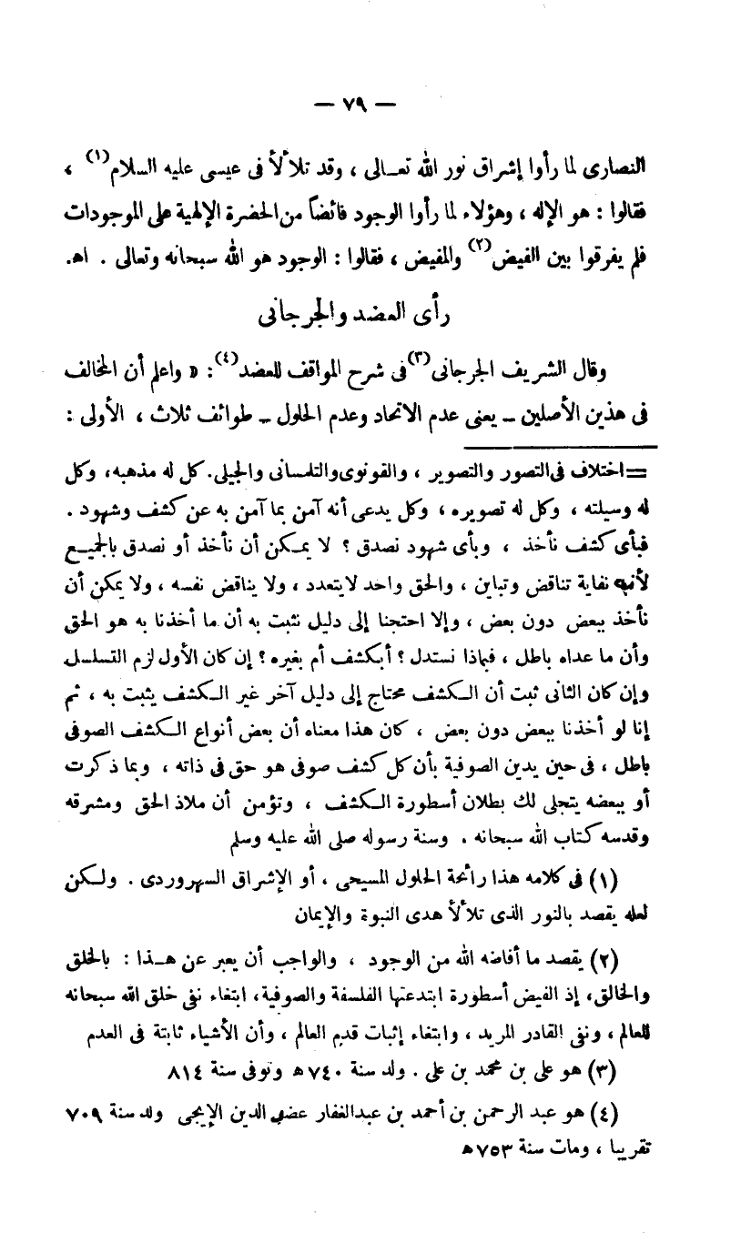 4 هو عبد الرحمن بن أحمد بن عبد الغفار عضد الدين الإيجي ولد سنة 709 تقريبا، ومات سنة 753هـ.