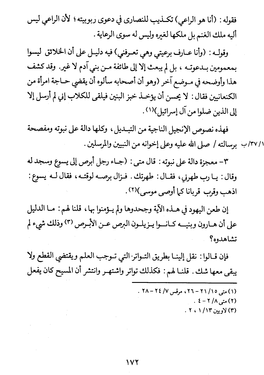 فهذه نصوص الإنجيل الناجية من التبديلد، وكلها دالة على نبوته ومفصحة برسالته / (1/37/ب) صلى الله عليه وعلى إخوانه من النبيّين والمرسلين.