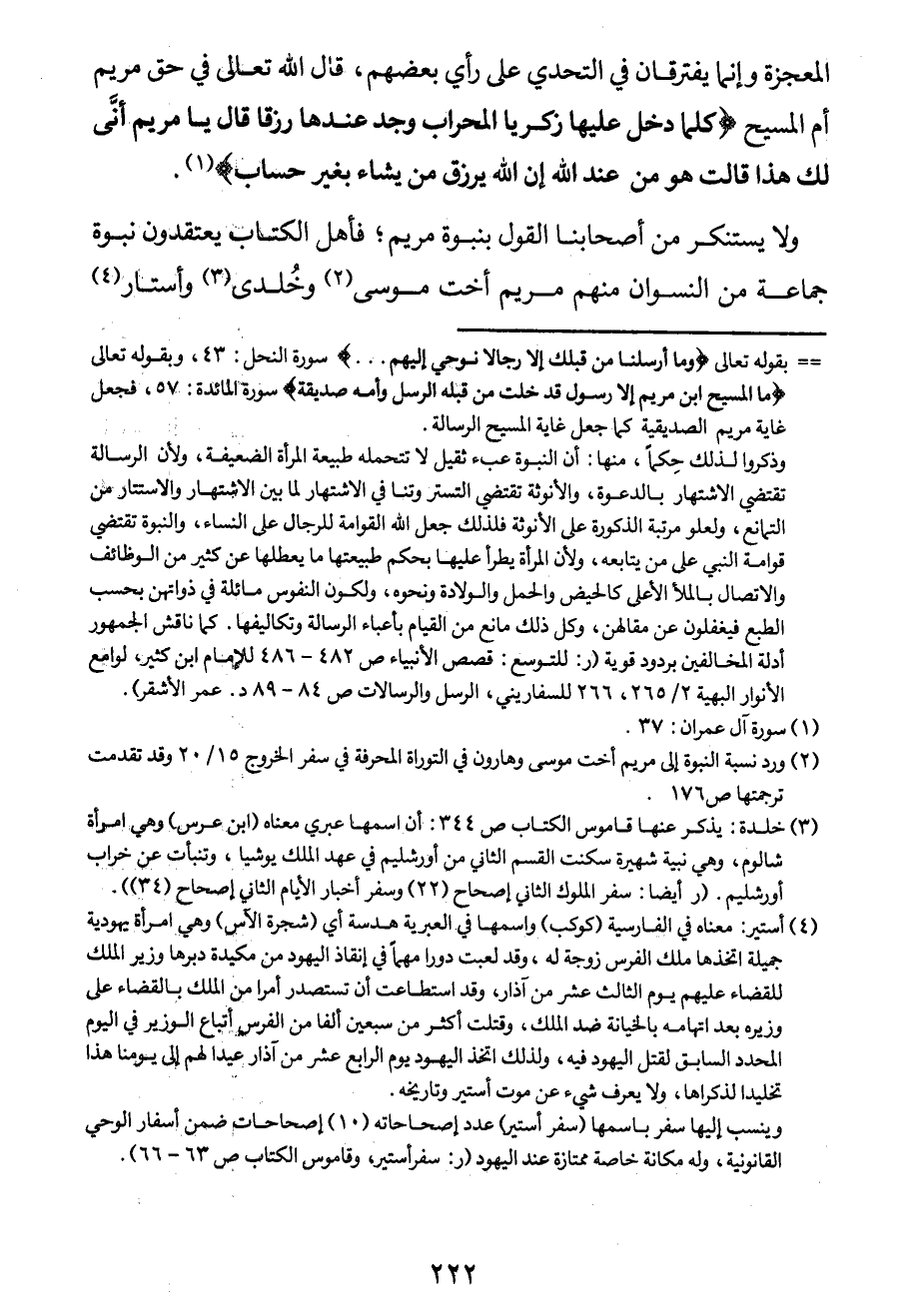 1 ورد نسبة النبوة إلى مريم أخت موسى وهارون في التوراة المحرفة في سفر الخروج 15/20، وقد تقدمت ترجمتها ص: 176.