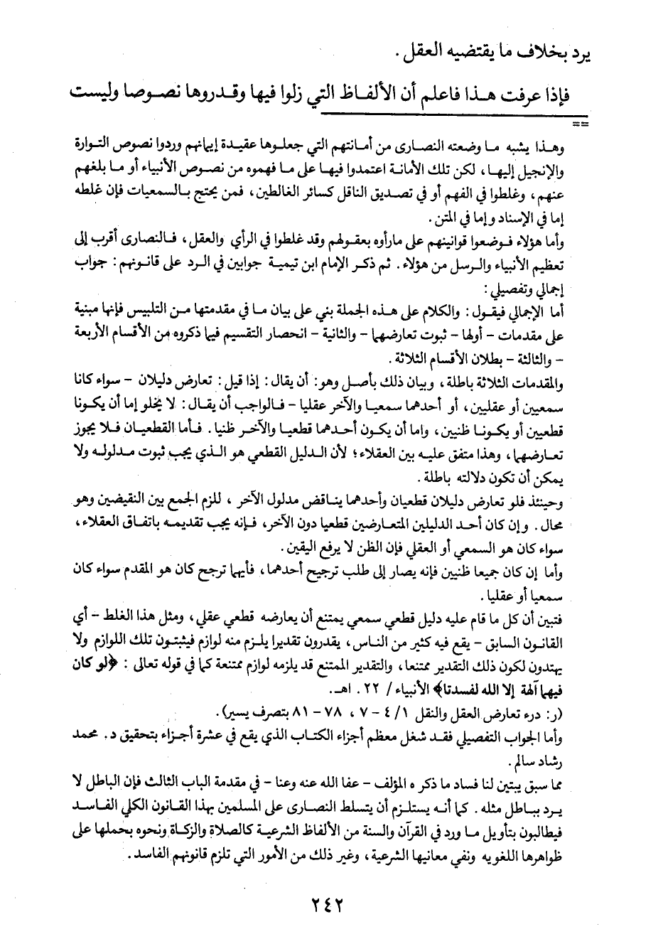 (ر: درء تعارض العقل والنقل 1/4-7، 78-81، بتصرف يسير) .