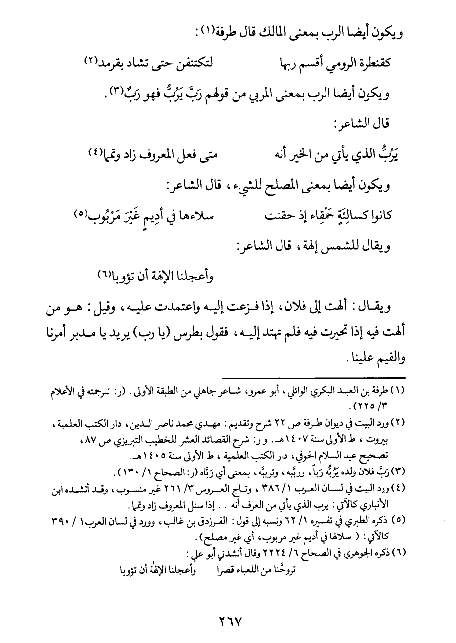 2 ورد البيت في ديوان طرفة ص 22، شرح وتقديم: مهدي محمّد ناصر الدين، دار الكتاب العلمية، بيروت، ط الأولى سنة 1407هـ، ور: شرح القصائد العشر للخطيب التبريزي ص 87. تصحيح عبد السلام الحوفي، دار الكتب العلمية، ط الأولى سنة 1405هـ.
