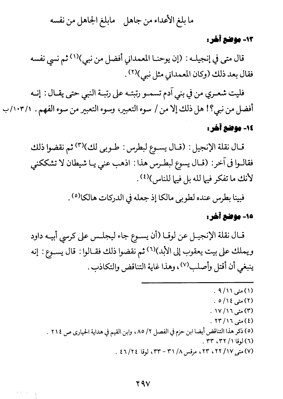 5 ذكرهذاالتناقض أيضاًابن حزم في الفصل2/85،وابن القيم في هدايةالحياري ص214.