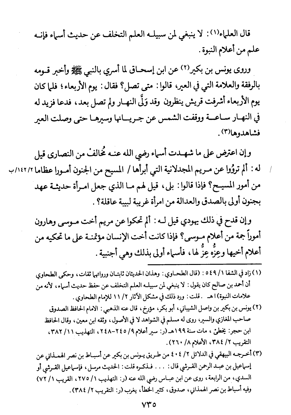 1 زاد في الشفا 1/549: "قال الطحاوي: وهذان الحديثان ثابتان ورواتهما ثقات، وحكى الطحاوي أن أحمد بن صالح كان يقول: لا ينبغي لِمَن سبيله العلم التخلف عن حفظ حديث أسماء؛ لأنه من علامات النبوة". اهـ