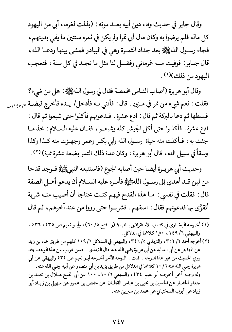 1 أخرجه البخاري في كتاب الاستقراض باب 9. (ر: فتح الباري 5/60، وأبو نعيم ص 435، 436، والبيهقي 6/149، 150، كلاهما في الدلائل.
