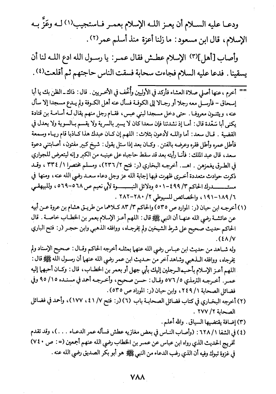 1 أخرجه ابن حبان. (ر: الموارد ص 535) ، والحاكم 3/83، كلاهما من طريق هشام ابن عروة عن أبيه عن عائشة رضي الله عنها أن البني صلى الله عليه وسلم قال: اللهم أعزَّ الإسلام بعمر بن الخطاب خاصة. قال الحاكم: "حديث صحيح على شرط الشيخين، ولم يخرجاه"، ووافقه الذهبي. وابن حجر. (ر: فتح الباري 7/48) .
