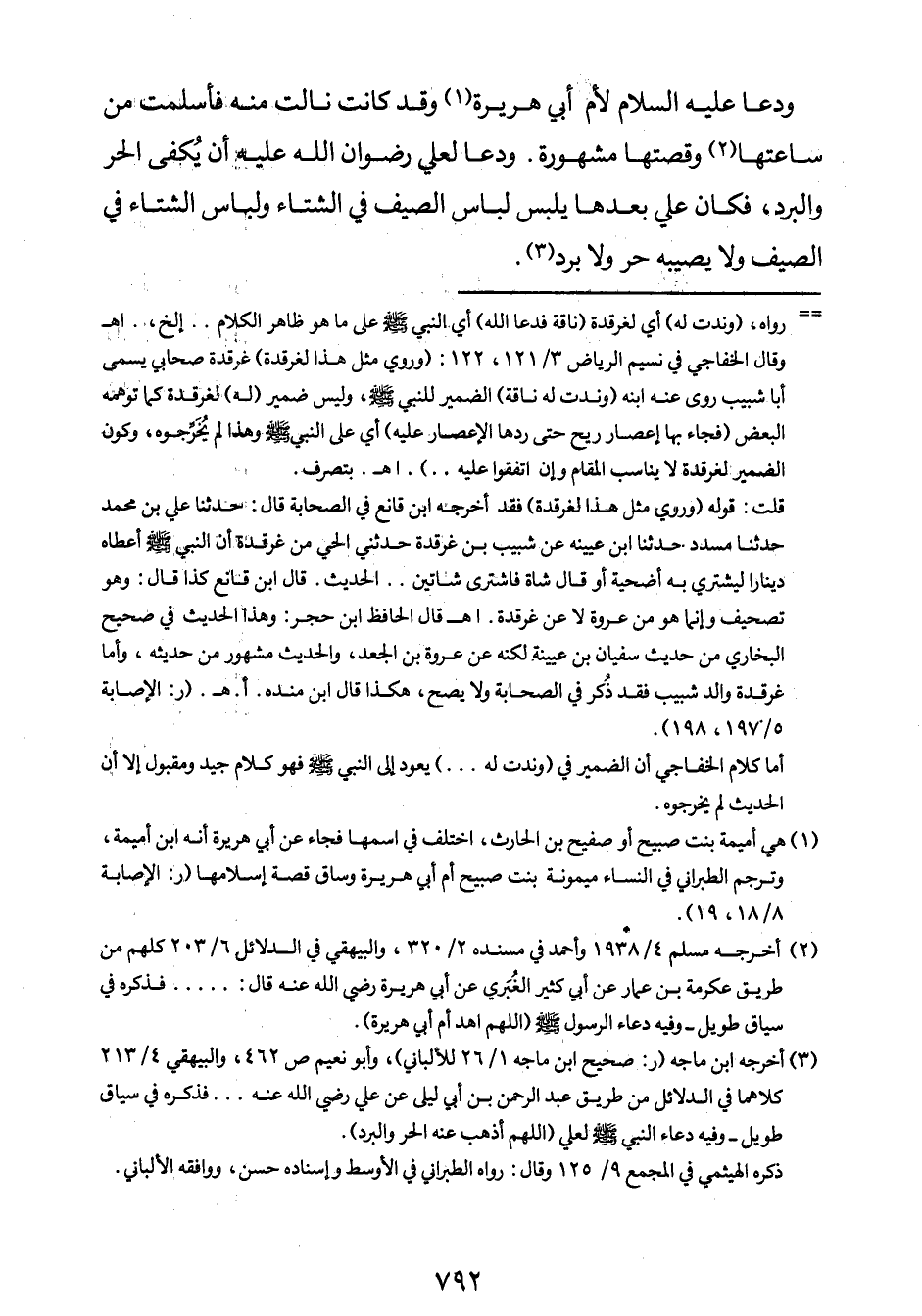3 أخرجه ابن ماجه. (ر: صحيح ابن ماجه1/26، للألباني) ، وأبو نعيم ص462، والبيهقي 4/213، كلاهما في الدلائل من طريق عبد الرحمن بن أبي ليلى عن عليّ رضي الله عنه ... ، فذكره في سياق طويل، وفيه: دعاء النبي صلى الله عليه وسلم لعليّ: "اللهم أذهب عنه الحرّ والبرد".