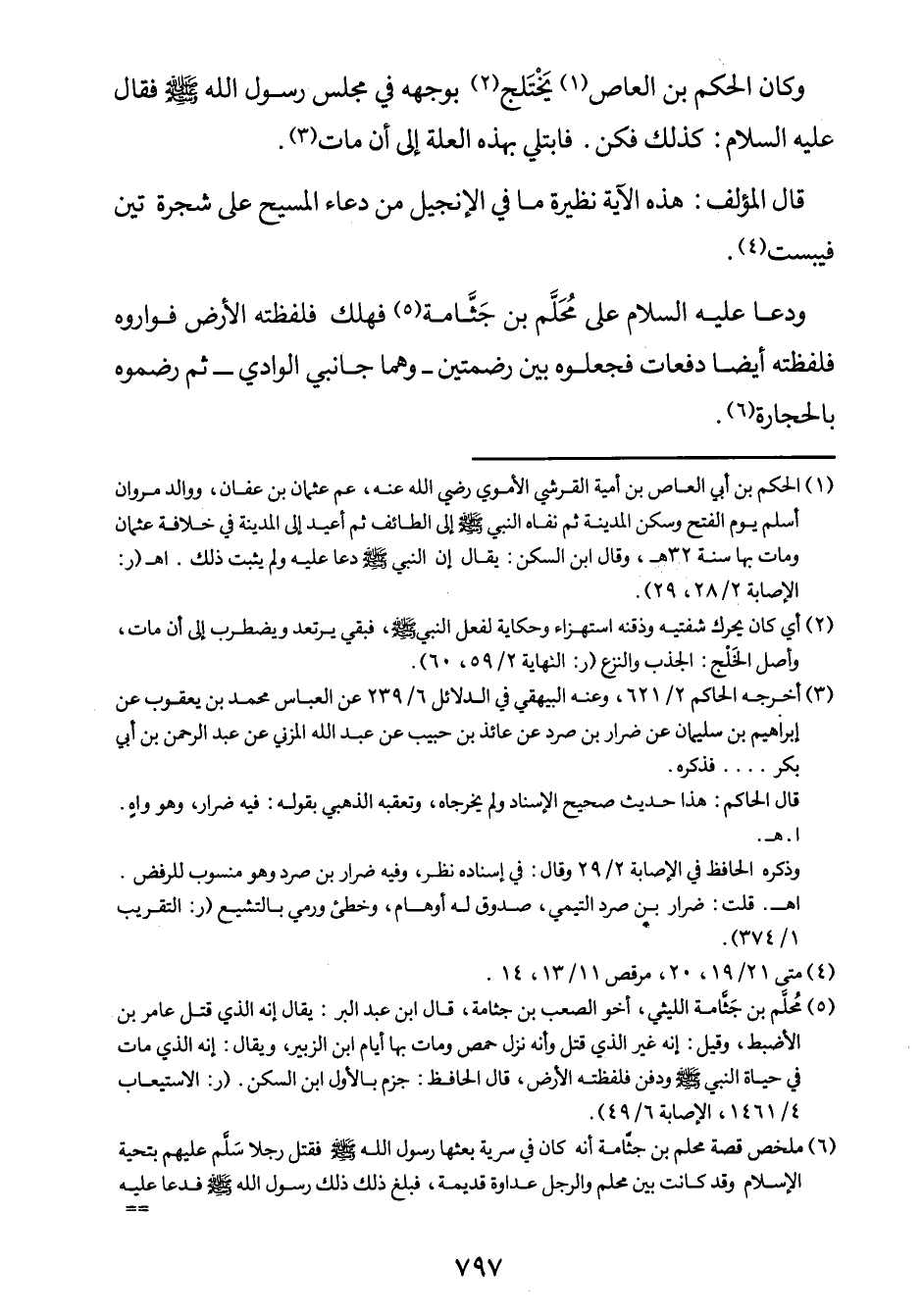 6 ملخص قصة محلم بن جثّامة أنه كان في سرية بعثها رسول الله صلى الله عليه وسلم فقتل رجلاً سَلَّم عليهم بتحية الإسلام وقد كانت بين محلم والرجل عداوة قديمة، فبلغ ذلك رسول الله صلى الله عليه وسلم فدعا عليه فقال: "اللهم لا تغفر لمحلم بن جثامة" ثلاثاً.