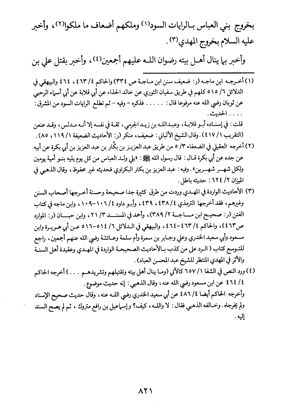 3 الأحاديث الواردة في المهدي وردت من طرق كثيرة جدّاً صحيحة وحسنة، أخرجها أصحاب السنن وغيرهم. فقد أخرجها الترمذي 4/438، 439، وأبو داود 4/106-109، وابن ماجه في كتاب الفتن. (ر: صحيح ابن ماجه 2/389) ، وأحمد في المسند 3/21، وابن حبان. (ر: الموارد ص 463) ، والحاكم 4/463-464، والبيهقي في الدلائل 6/514-516، عن أبي هريرة وابن مسعود وأبي سعيد الخدري وعليّ وجابر بن سمرة وأم سلمة وعائشة - رضي الله عنهم أجمعين -. راجع للتوسع كتاب: (الردّ على من كذب بالأحاديث الصحيحة الواردة في المهدي وعقيدة أهل السنة والأثر في المهدي المنتظر للشيخ عبد المحسن العباد) .