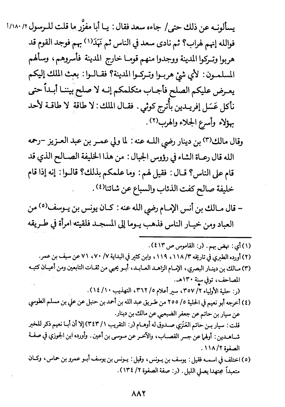 - قال مالك بن أنس الإمام رضي الله عنه: "كان يونس بن يوسف5 من العباد ومن خيار الناس فذهب يوماً إلى المسجد فلقيته امرأة في طريقه