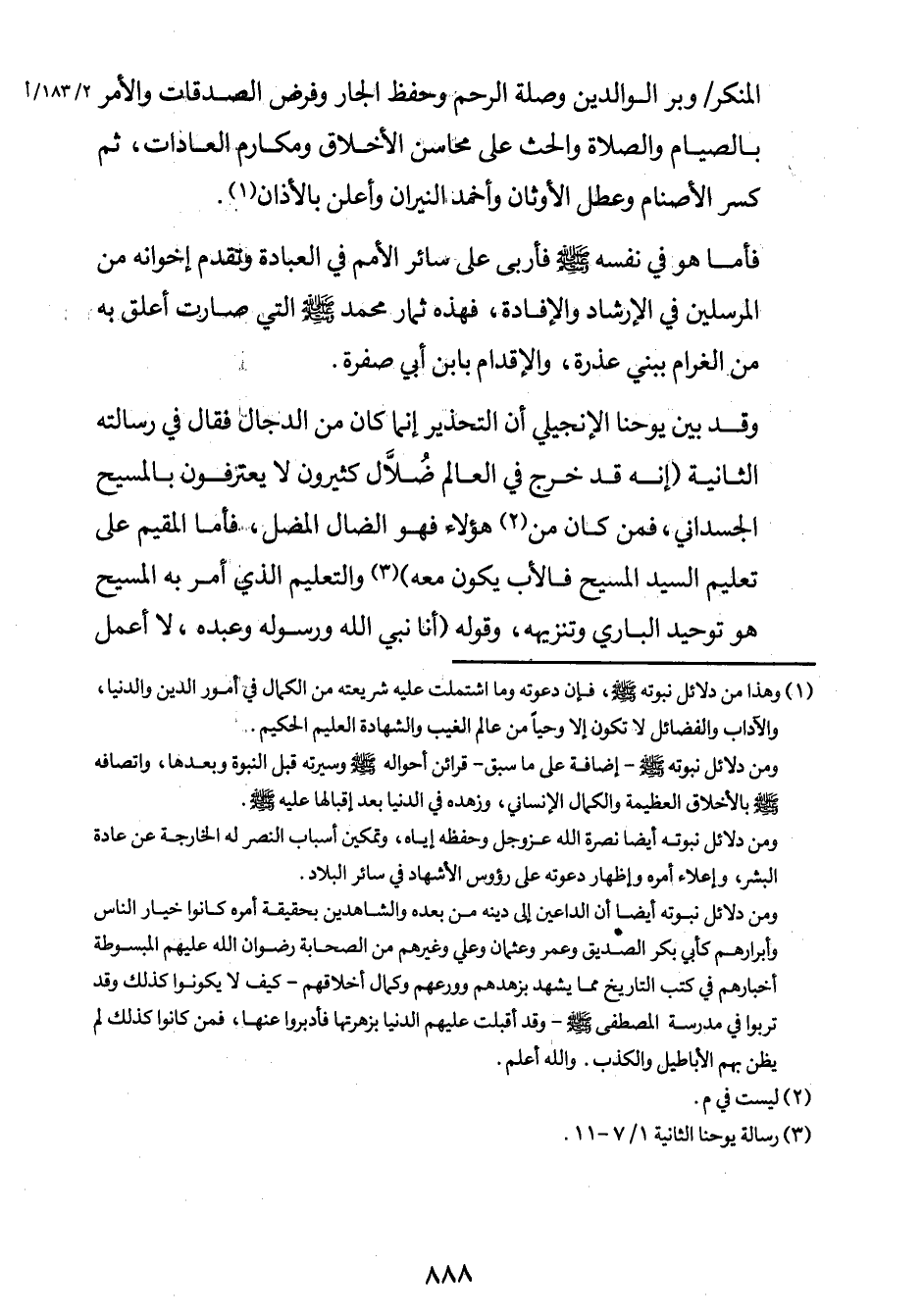 فأما هو في نفسه صلى الله عليه وسلم فأربى على سائر الأمم في العبادة وتقدم إخوانه من المرسلين في الإرشاد والإفادة، فهذه ثمار محمّد صلى الله عليه وسلم التي صارت أعلق به من الغرام ببني عذرة، والإقدام بابن أبي صفرة.