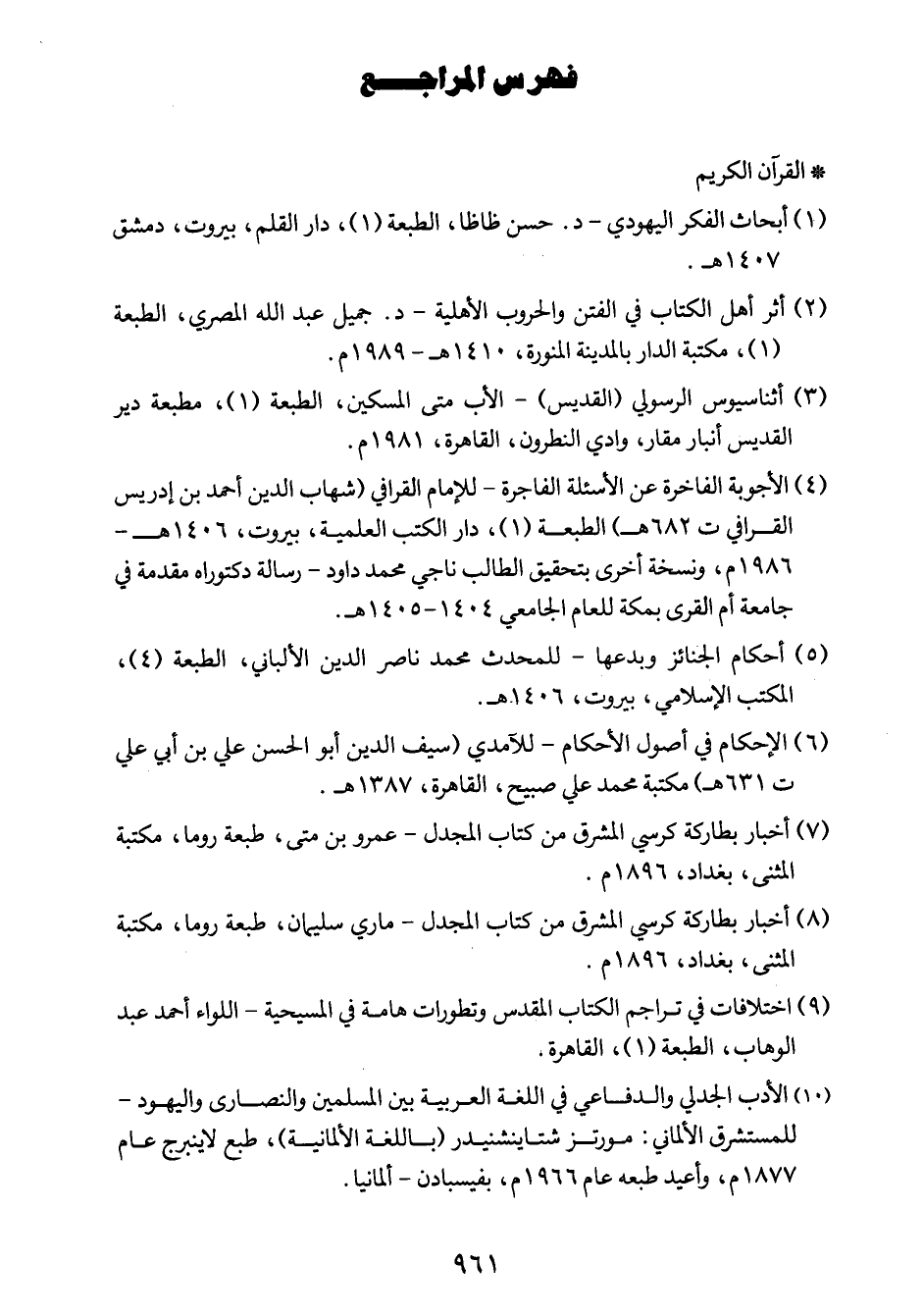 10- الأدب الجدلي والدفاعي في اللغة العربية بين المسلمين والنصارى واليهود - للمستشرق الألماني: مورتز شتاينشنيدر (باللغة الألمانية) ، طبع لاينبرج عام 1877م، وأعيد طبعه عام 1966م، بفيسبادن - ألمانيا.