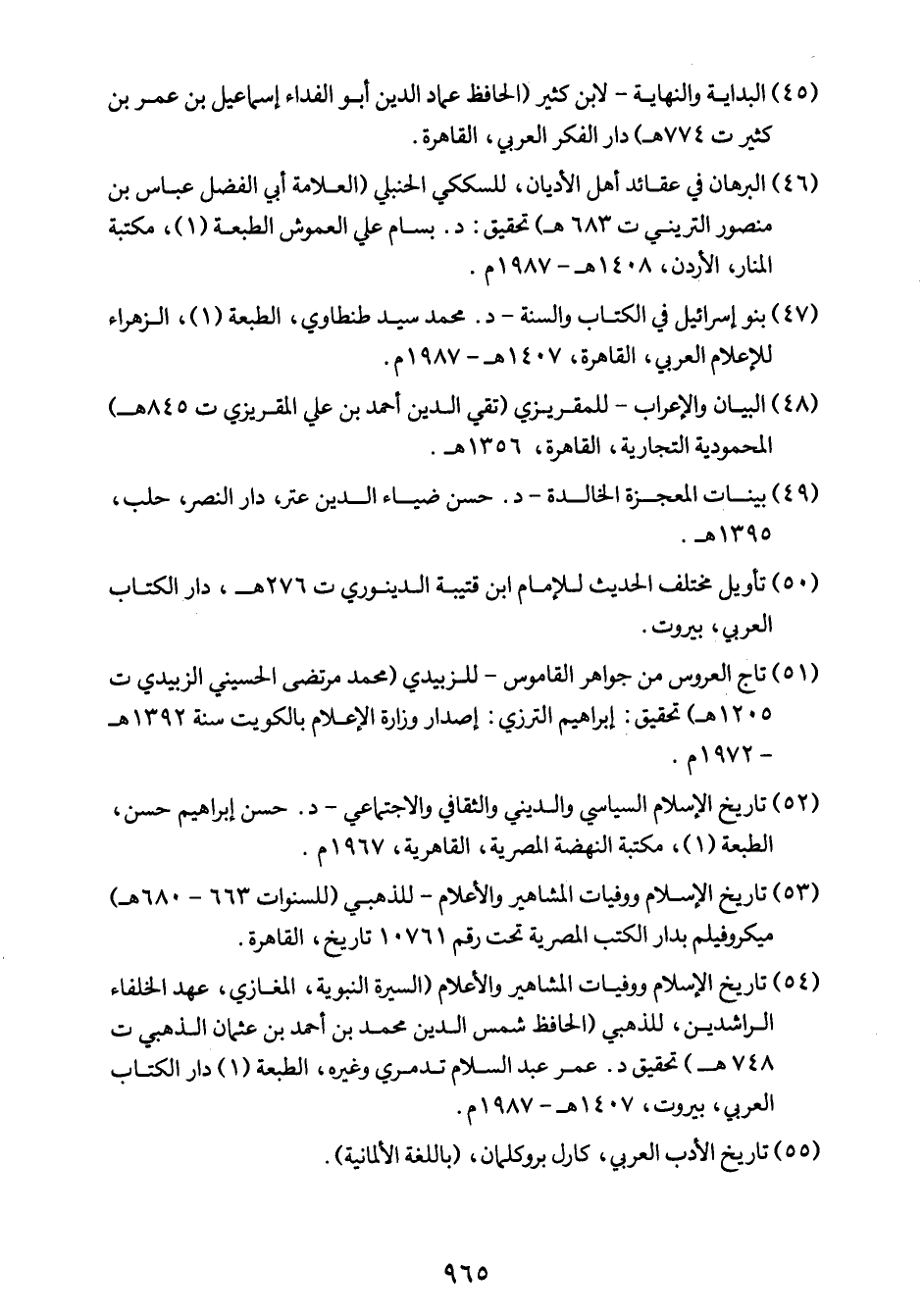 45- البداية والنهاية لابن كثير (الحافظ عماد الدين أبو الفداء إسماعيل بن عمر بن كثير ت 774هـ) ، دار الفكر العربي، القاهرة.