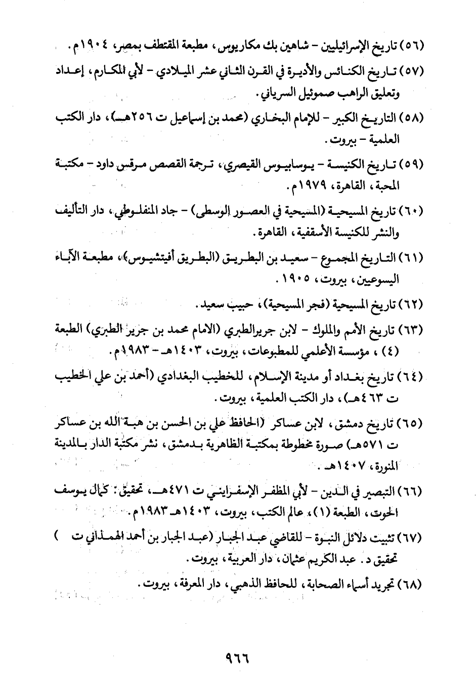 59- تاريخ الكنيسة - يوسابيوس القيصري، ترجمة القصص مرقس داود - مكتبة المحبة، القاهرة، 1979م.