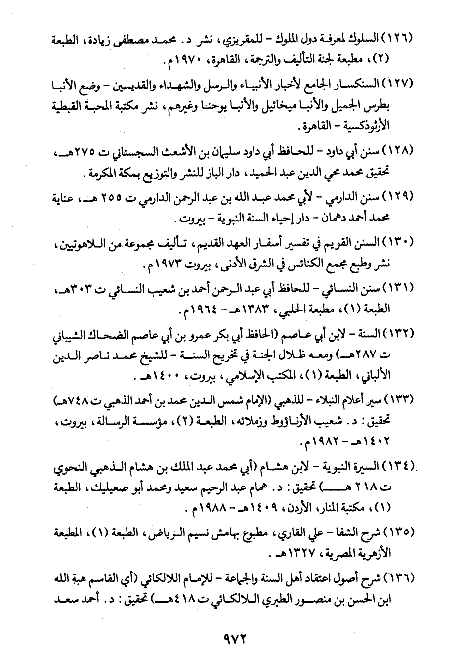 131- سنن النسائي - للحافظ أبي عبد الرحمن أحمد بن شعيب النسائي ت 303هـ، الطبعة (1) ، مطبعة الحلبي، 1383هـ/ 1964م.