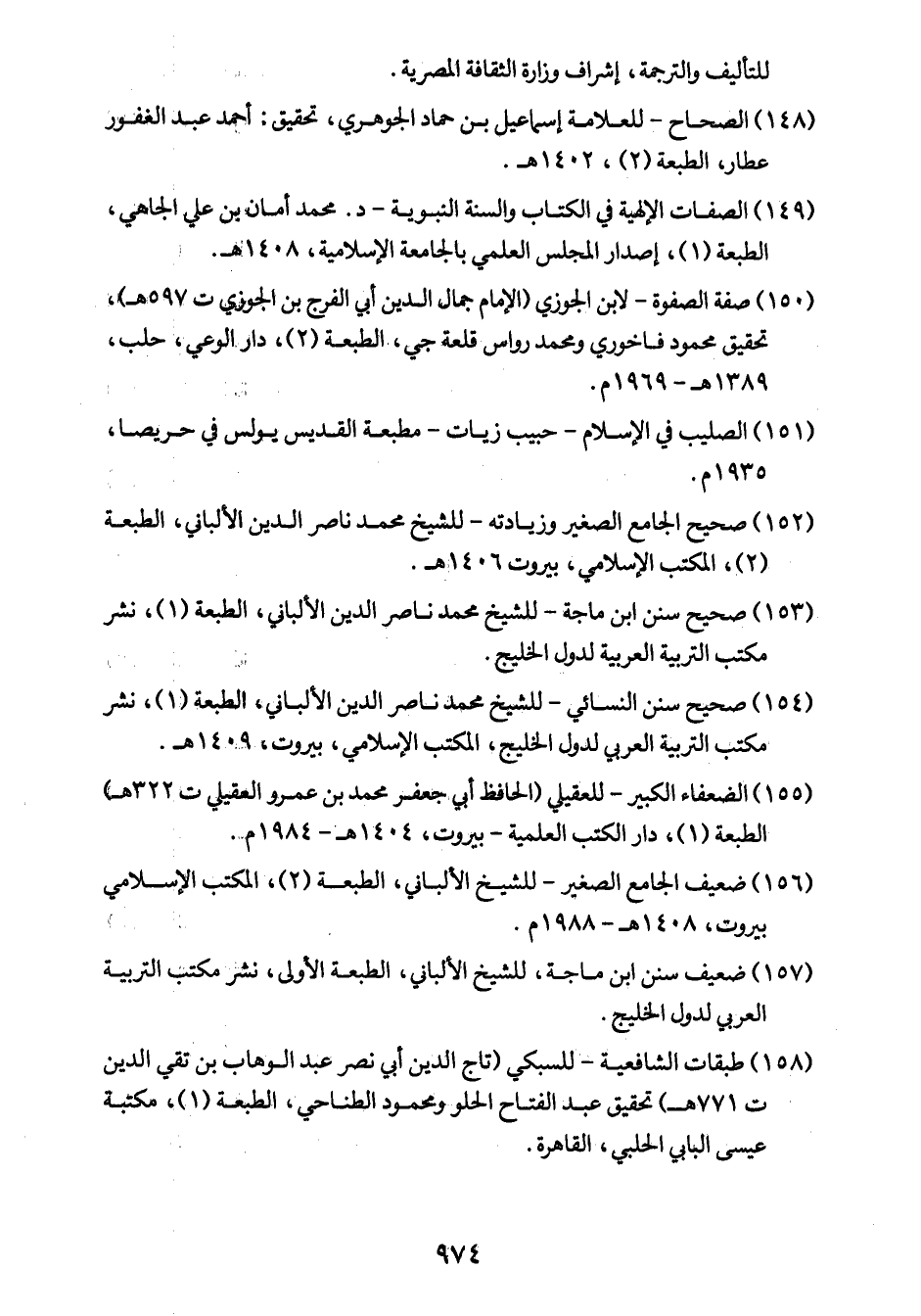 157- طبقات الشافعية - للسبكي (تاج الدين أبي نصر عبد الوهّاب ابن تقي الدين ت 771هـ) ، تحقيق: عبد الفتاح الحلو ومحمود الطناحي، الطبعة (1) ، مكتبة عيسى البابي الحلبي، القاهرة.