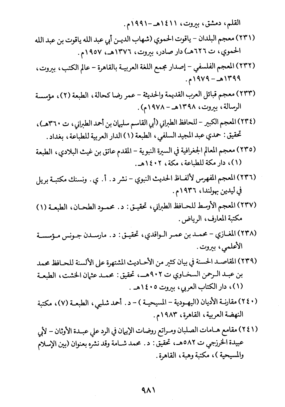 232- المعجم الفلسفي - إصدار مجمع اللغة العربية بالقاهرة - عالم الكتب، بيروت، 1399هـ/ 1979م.