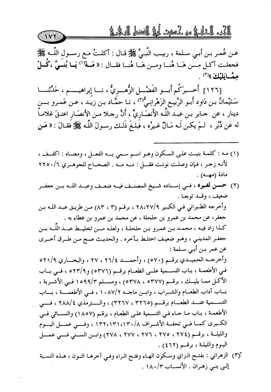 126 - أَخْبَرَكُمْ أَبُو الْفَضْلِ الزُّهْرِيُّ، نا إِبْرَاهِيمُ، حَدَّثَنَا سُلَيْمَانُ بْنُ دَاوُدَ أَبُو الرَّبِيعِ الزَّهْرَانِيُّ، نا حَمَّادُ بْنُ زَيْدٍ، عَنْ عَمْرِو بْنِ دِينَارٍ، عَنْ جَابِرِ بْنِ عَبْدِ اللَّهِ الْأَنْصَارِيِّ، أَنَّ رَجُلًا، مِنَ الْأَنْصَارِ أَعْتَقَ غُلَامًا لَهُ عَنْ دُبُرٍ، لَمْ يَكُنْ لَهُ مَالٌ غَيْرُهُ، فَبَلَغَ ذَلِكَ رَسُولَ اللَّهِ فَقَالَ: «مَنْ -[173]- يَشْتَرِيهِ مِنِّي؟» فَاشْتَرَاهُ نُعَيْمُ بْنُ عَبْدِ اللَّهِ بِثَمَانِ مِائَةِ دِرْهَمٍ , فَدَفَعَهَا إِلَيْهِ، قَالَ جَابِرٌ: عَبْدًا قِبْطِيًّا، مَاتَ عَامَ أَوَّلَ