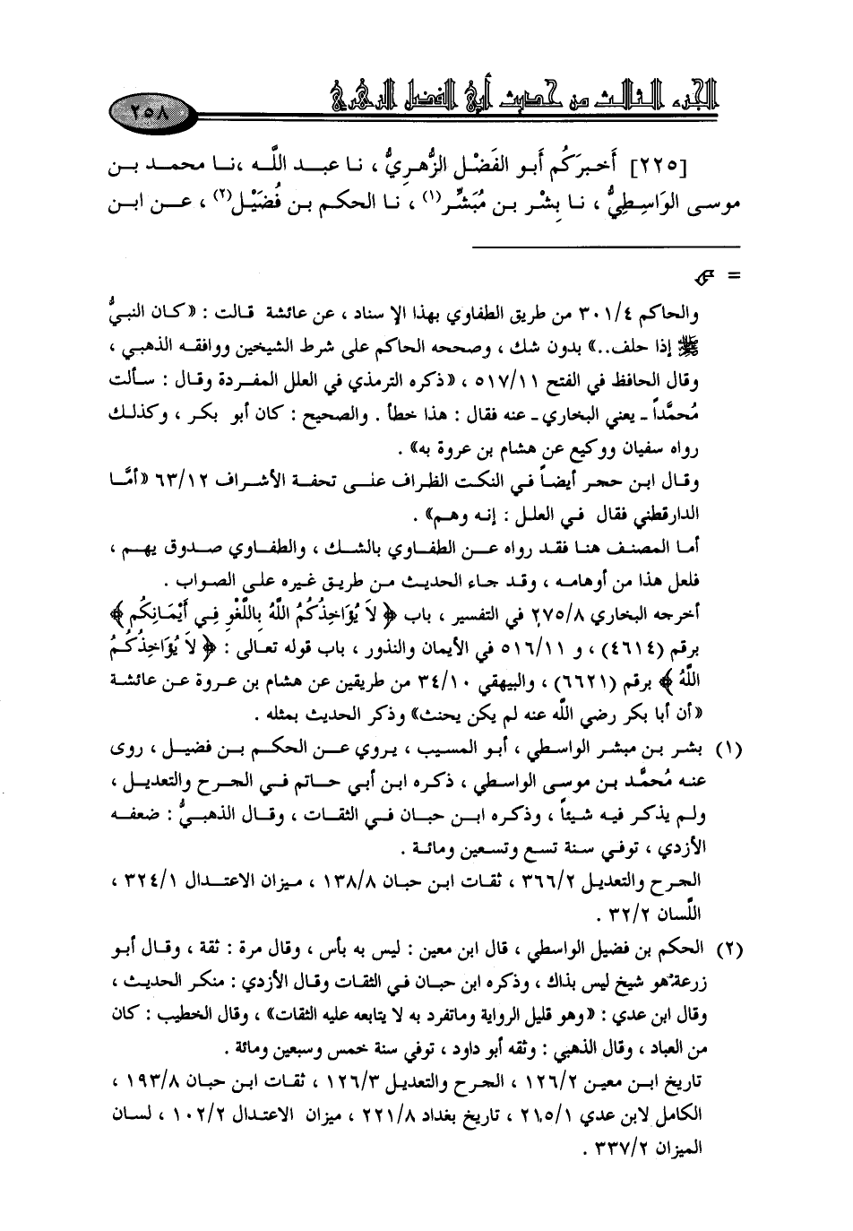 225 - أَخْبَرَكُمْ أَبُو الْفَضْلِ الزُّهْرِيُّ، نا عَبْدُ اللَّهِ، نا مُحَمَّدُ بْنُ مُوسَى الْوَاسِطِيُّ، نا بِشْرُ بْنُ مُبَشِّرٍ، نا الْحَكَمُ بْنُ فُضَيْلٍ، عَنِ ابْنِ -[259]- شِهَابٍ، عَنْ عَبْدِ اللَّهِ بْنِ بُرَيْدَةَ الْأَسْلَمِيِّ، قَالَ: قَالَ رَسُولُ اللَّهِ صَلَّى اللَّهُ عَلَيْهِ وَسَلَّمَ: «اللَّهُمَّ , اغْفِرْ لِعَبْدِ الْقَيْسِ - مَرَّتَيْنِ - أَتَوْا إِلَى الْإِسْلَامِ غَيْرَ خَزَايَا , وَلَا مَوْتُورِينَ لَمْ يُرَامُوا فِي الْإِسْلَامِ بِسَهْمٍ، وَلَمْ يُرَامُوا بِهِ»