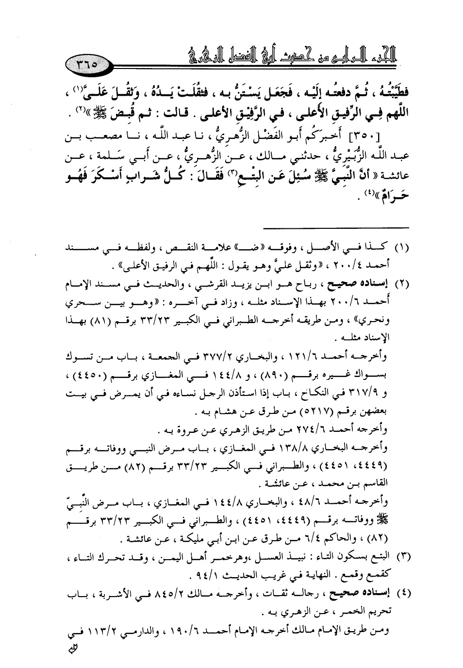 350 - أَخْبَرَكُمْ أَبُو الْفَضْلِ الزُّهْرِيُّ، نا عَبْدُ اللَّهِ، نا مُصْعَبُ بْنُ عَبْدِ اللَّهِ الزُّبَيْرِيُّ، حَدَّثَنِي مَالِكٌ، عَنِ الزُّهْرِيِّ، عَنْ أَبِي سَلَمَةَ، عَنْ عَائِشَةَ: أَنَّ النَّبِيَّ صَلَّى اللَّهُ عَلَيْهِ وَسَلَّمَ سُئِلَ عَنِ الْبِتْعِ , فَقَالَ: «كُلُّ شَرَابٍ أَسْكَرَ فَهُوَ حَرَامٌ»