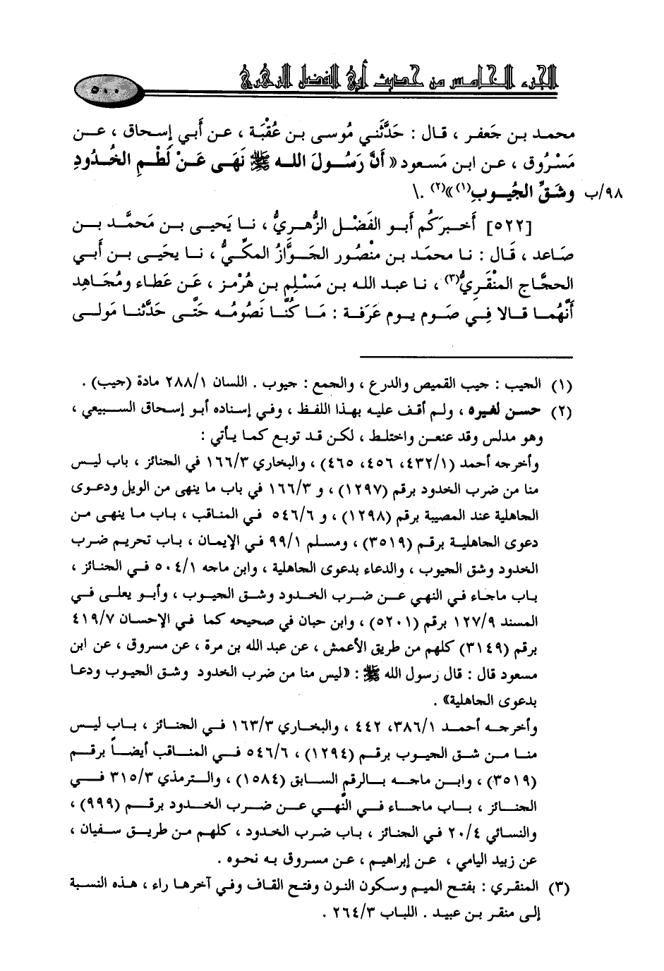 522 - أَخْبَرَكُمْ أَبُو الْفَضْلِ الزُّهْرِيُّ، نا يَحْيَى بْنُ مُحَمَّدِ بْنِ صَاعِدٍ، قَالَ: نا مُحَمَّدُ بْنُ مَنْصُورٍ الْجَوَّازُ الْمَكِّيُّ، نا يَحْيَى بْنُ أَبِي الْحَجَّاجِ الْمِنْقَرِيُّ، نا عَبْدُ اللَّهِ بْنُ مُسْلِمِ بْنِ هُرْمُزَ، عَنْ عَطَاءٍ، وَمُجَاهِدٍ، أَنَّهُمَا قَالَا فِي صَوْمِ يَوْمِ عَرَفَةَ: مَا كُنَّا نَصُومُهُ حَتَّى حَدَّثَنَا مَوْلَى -[501]- أَبِي قَتَادَةَ، عَنْ أَبِي قَتَادَةَ، عَنْ رَسُولِ اللَّهِ صَلَّى اللَّهُ عَلَيْهِ وَسَلَّمَ قَالَ: «صَوْمُ عَرَفَةَ أَجْرُ السَّنَةِ الْمَاضِيَةِ، وَنَافِلَةٌ لِلسَّنَةِ الْمُسْتَقْبَلَةِ»