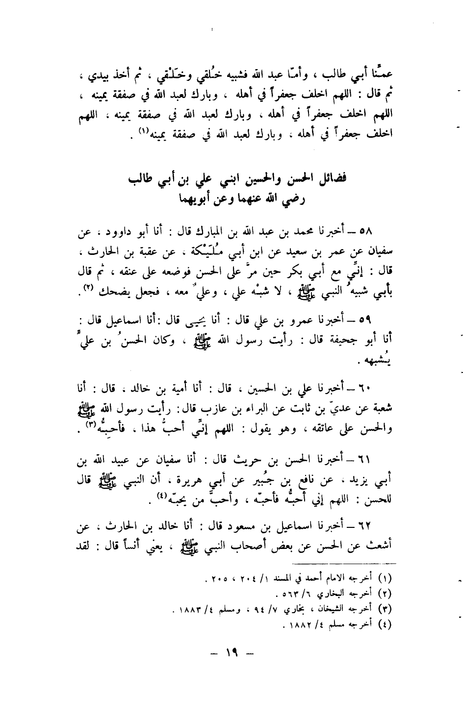 59 - أخبرنَا عَمْرو بن عَليّ قَالَ أَنا يحيى قَالَ أَنا إِسْمَاعِيل قَالَ أَنا أَبُو جُحَيْفَة قَالَ رَأَيْت رَسُول الله صلى الله عَلَيْهِ وَسلم وَكَانَ الْحسن بن عَليّ يُشبههُ
