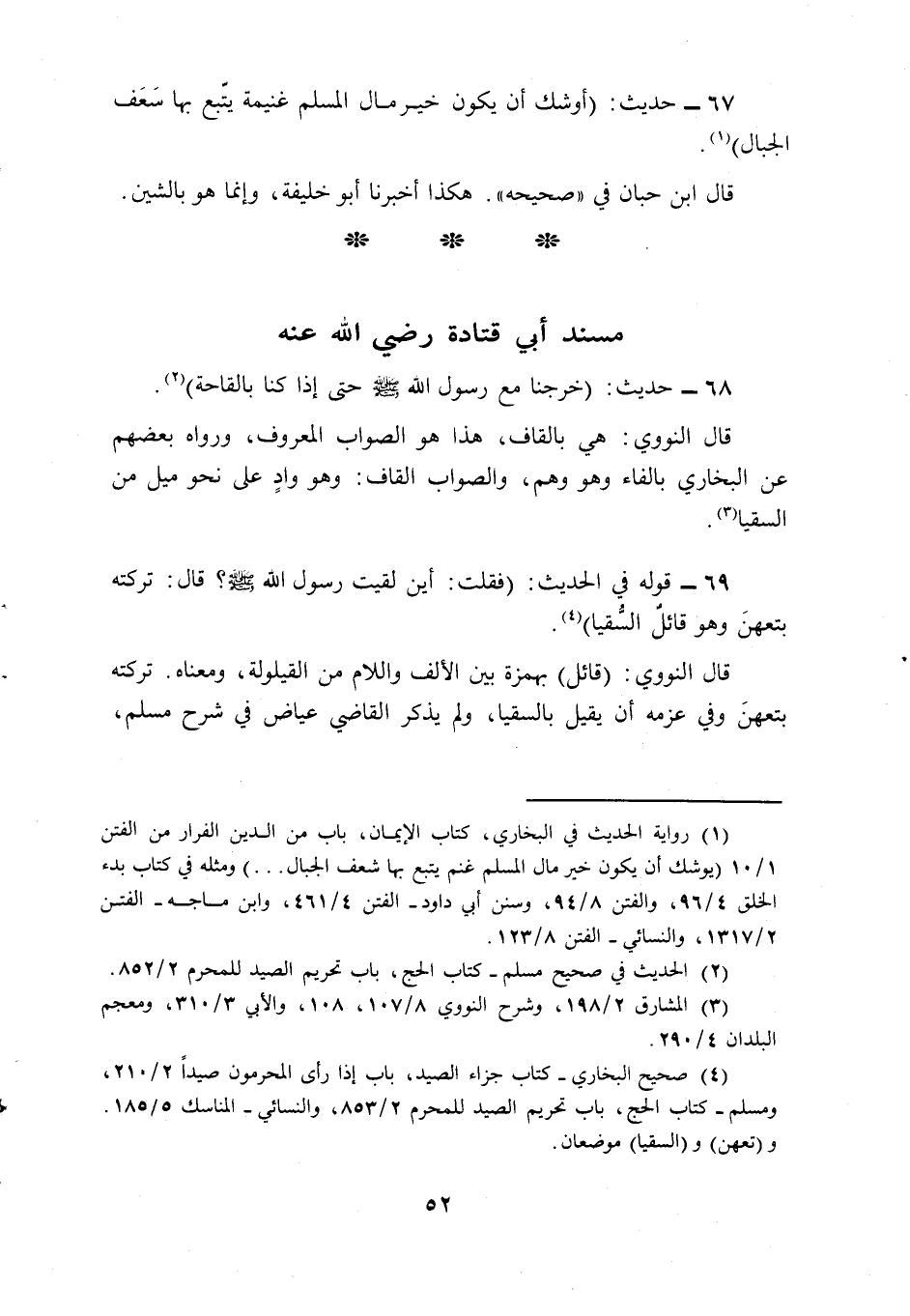 قَالَ النَّوَوِيّ هِيَ بِالْقَافِ هَذَا هُوَ الصَّوَاب الْمَعْرُوف وَرَوَاهُ بَعضهم عَن البُخَارِيّ بِالْفَاءِ وَهُوَ وهم وَالصَّوَاب الْقَاف وَهُوَ وَاد على نَحْو ميل من السقيا