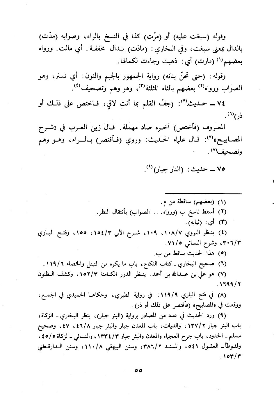 // شرح المصابيح قَالَ عُلَمَاء الحَدِيث وَرُوِيَ فاقتصر بالراء وهووهم وتصحيف