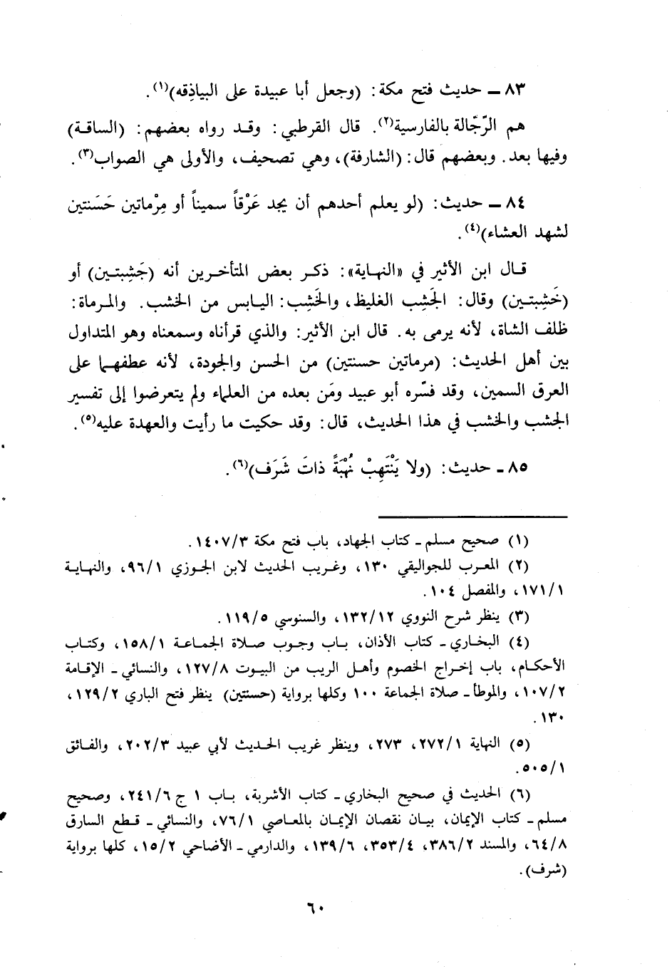 // ابْن الاثير وَالَّذِي قرأناه وسمعناه وَهُوَ المتداول بَين أهل الحَدِيث مرماتين حسنتين من الْحسن والجودة لِأَنَّهُ عطفهما على الْعرق السمين وَقد فسره ابو عبيد وَمن بعده من الْعلمَاء وَلم يتَعَرَّضُوا إِلَى تَفْسِير الجشب والخشب فِي هَذَا الحَدِيث قَالَ وَقد حكيت مَا رَأَيْت والعهدة عَلَيْهِ